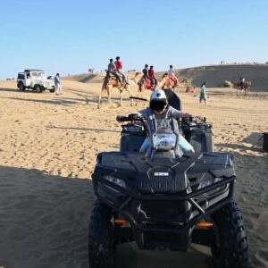 砂漠ではらくだライド、パラグライダー、バギーなどアクテビティを楽しむことができます。陽が落ちるまで時間があるので防寒着と楽しみの用意をしてきた方が良いです。