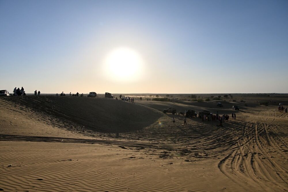 スリリングな砂漠の中の山谷をドライブし、人が集まっているエリアに行きそこで夕日を見るのがデザートジープのプランでした。