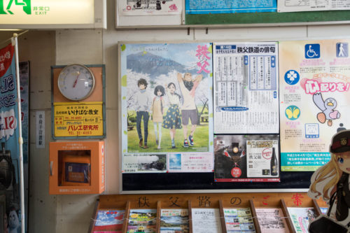 熊谷駅にはアニメのポスターや鉄道娘のポップが置いてありました。またたまたまなのか乗った電車は特別な内装と外装の綺麗な電車でした。車両基地に行く人たちがたくさんいたのでけっこうな混雑です。