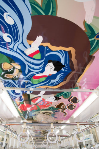 熊谷駅にはアニメのポスターや鉄道娘のポップが置いてありました。またたまたまなのか乗った電車は特別な内装と外装の綺麗な電車でした。車両基地に行く人たちがたくさんいたのでけっこうな混雑です。