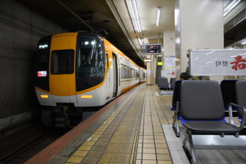 そのまま近鉄の駅まで向かいます。入場券は150円です。しまかぜが来るまでは特急を見ていました。最初にいたのは黄色い伊勢志摩ライナー9時台と17時台に1本づつなのでちょっと希少です。アーバンライナーも遅れて来ました。
