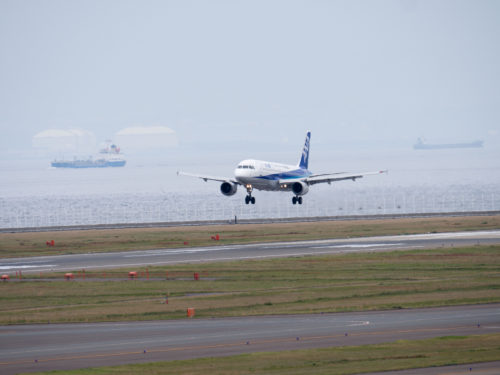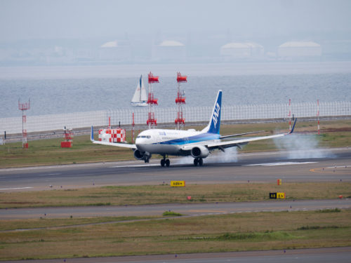 飛行機の写真を撮っている間、同じANAの機体と思われる飛行機が何度もタッチアンドゴーを繰り返していました。連休中にパイロットの訓練だと思いますが左の車輪から着陸する事が多かったので苦戦していたようです。