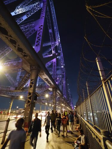 初日最後の目的地はハウラー橋。疲れたのでマックがあるショッピングモールで休憩。そこからリキシャを利用してハウラー橋に行こうとしましたが、1台目のリキシャには何を言っているのかわからないけど行けないという事で断られました。2台目は連れて行ってくれましたが、それも途中までで「この先歩いていけば橋に着くよ」と言われて最後は徒歩で橋に向かいました。だけど後少しの所で交通量の多い道路を渡れなかったので激混みの近くの駅に入り地下道を利用して道路を渡りなんとなハウラー橋に到着です・・・。