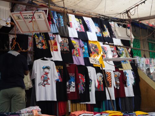 ホテルの近くの露店では色んなものを売っていますが日本のアニメTシャツがよく目につきました。