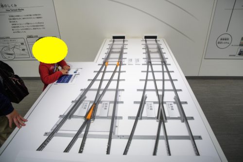 マスコンから始まり、地震発生による自動停止、自動ブレーキ?等々色んな展示があります。ボタンを押して遊べるので子供達が並んで遊んでいました。午前中は混んでいたけど3時以降は空いていました。