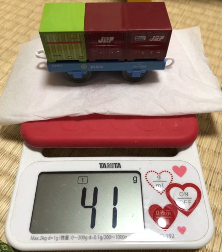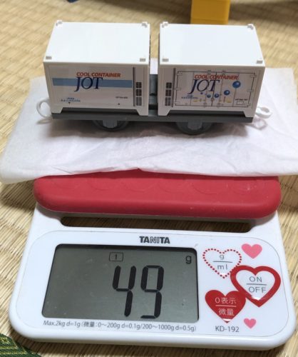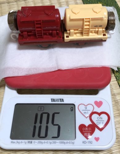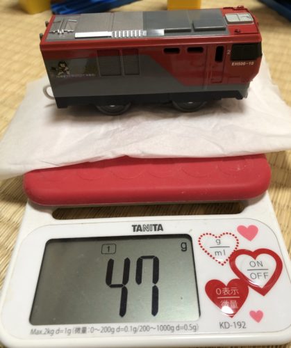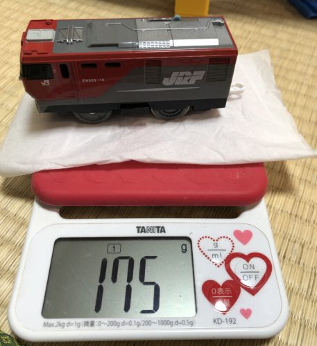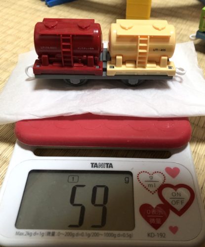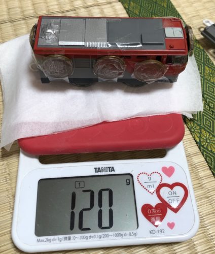 まずは何も手を入れずにできないかと考え、車両を重い順に並べようと思います。そのためにまず重さを測定します。