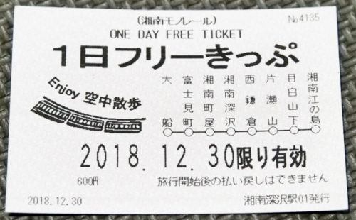 そこまで車で行き、湘南モノレールに一日乗車券で乗る事にしました。